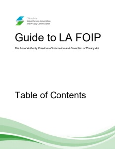 1 Guide to LA FOIP The Local Authority Freedom of Information and Protection of Privacy Act Table of Contents